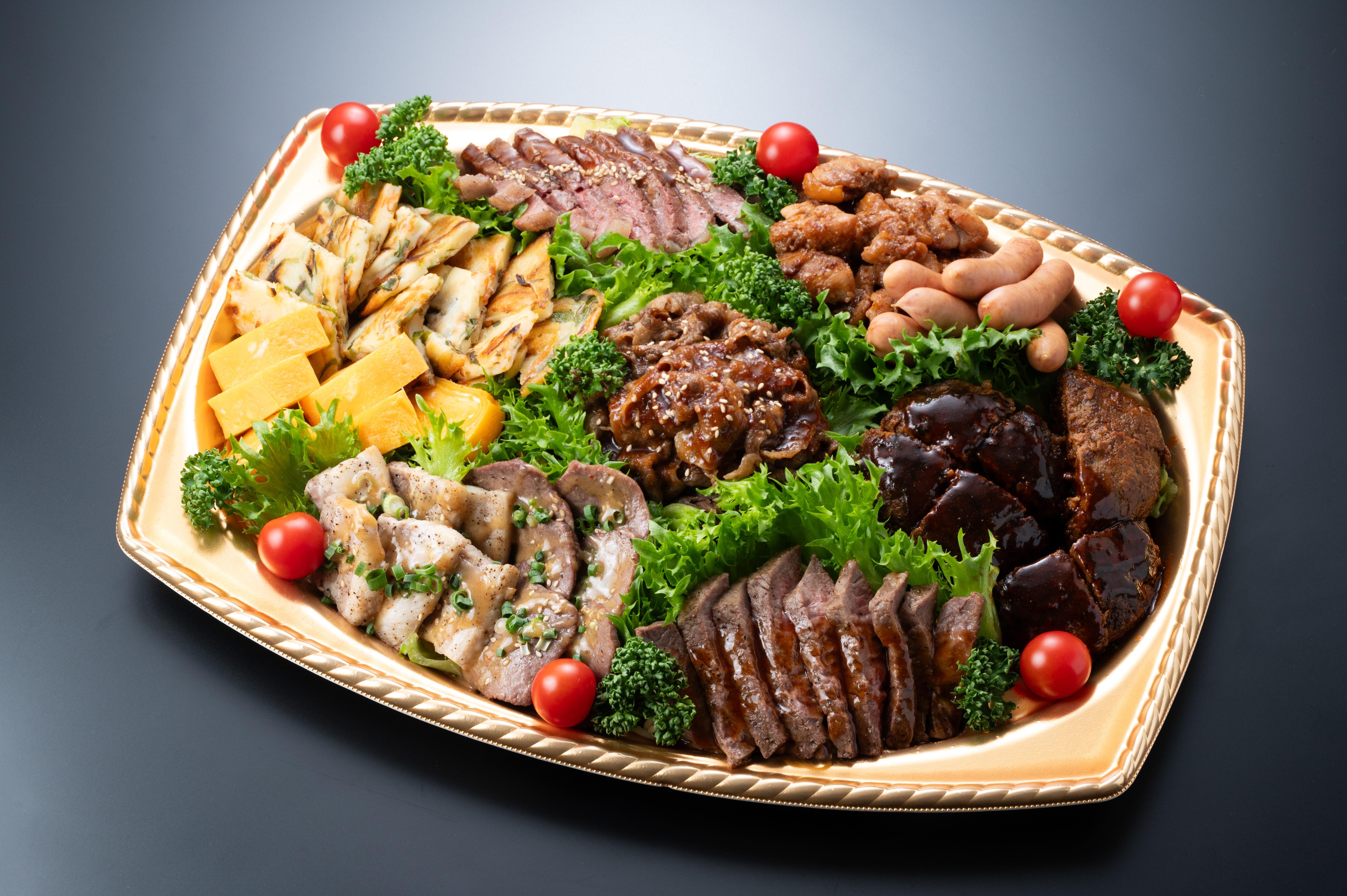 特選イチボステーキ・極上ランブステーキ・特製焼肉・牛タン焼き・ハンパーグオリジナルソース・粗挽きウインナー・豚バラ塩焼き・鶏モモタレ焼き・チヂミ・玉子焼き